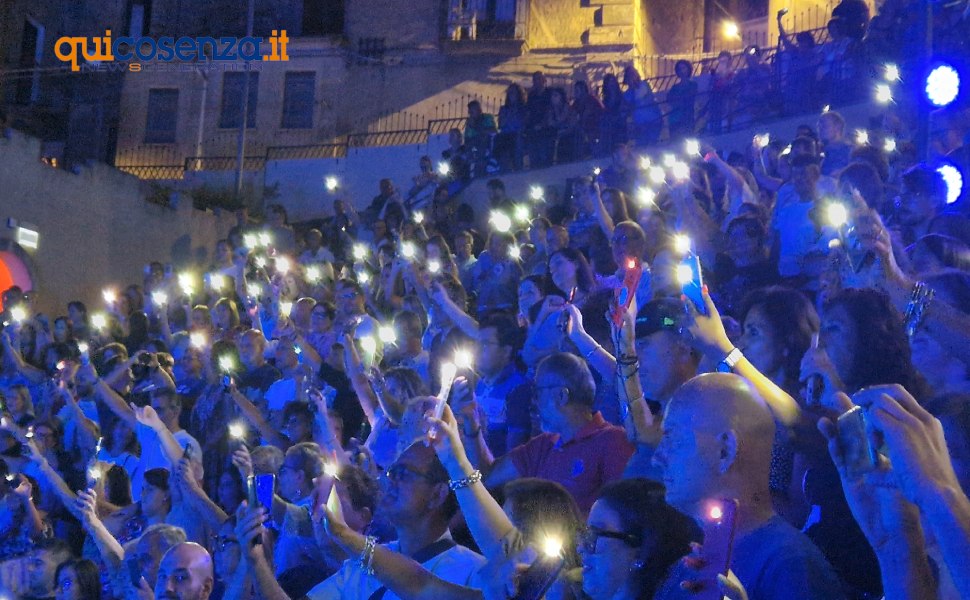 ALTOMONTE (CS) – La musica di Raf nella ‘magia dell’abbraccio‘ di Altomonte. Si è chiuso ieri sera, il ricco cartellone del 37° Festival Euromediterraneo che, anche quest’anno, ha regalato emozioni e tanto divertimento. Un concentrato di cultura, musica, teatro con un unico filo conduttore “La magia dell’abbraccio”. Il sindaco di Altomonte, Gianpietro Coppola e il direttore artistico, Antonio Blandi hanno voluto dedicare questa edizione del festival al calore e al messaggio di inclusione ispirandosi ad una poesia di Pablo Neruda. E poco prima che lo spettacolo di Raf iniziasse hanno invitato il pubblico a stringersi insieme in un abbraccio. Tantissimi gli spettacoli partiti il 4 agosto scorso con “The greatest showman”, a cura di Arcobaleno – associazione a sostegno della disabilità.