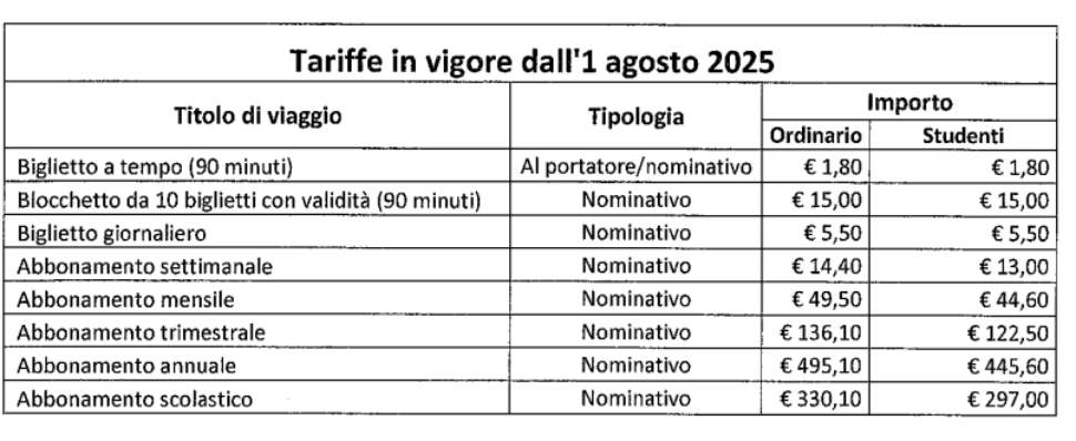 Amaco, le nuove tariffe per il servizio urbano in vigore dal 1° agosto