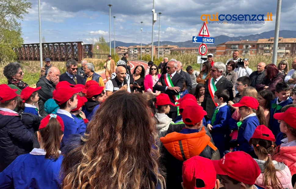 “L’inaugurazione di questa prima opera di agenda urbana Cosenza-Rende – ha spiegato il sindaco di Cosenza Franz Caruso – è simbolica e significativa proprio parlando di città unica. Un’opera che va nella direzione di quella mobilità sostenibile che stiamo portando avanti da tempo. È anche un impegno per un progetto che deve unire non solo le due città di Rende e Cosenza ma anche altre parti del territorio e deve abbracciate aree più vaste. Iniziative come queste permettono di unire i territori. Il messaggio che lanciamo con la prima delle undici opere che a breve inaugureremo è proprio questo: opere unitarie. Grazie all’impiantistica sportiva, qui di fianco nascerà il Palasport dello squash, ma anche con altre opere, possiamo unire diverse parti del territorio. Viale Magna Grecia, ad esempio, che è al confine con Rende e Castrolibero, è un’area che ritengo si debba sviluppare con interventi che danno un senso a quell’impegno a creare cose comuni nel territorio. Non ci siamo riusciti con il PNRR – ha concluso il sindaco di Cosenza – e questo dispiace perché potevamo avere una visione futura e di coesione, ma i tempi ristretti non ci hanno permesso di creare insieme dei progetti”.