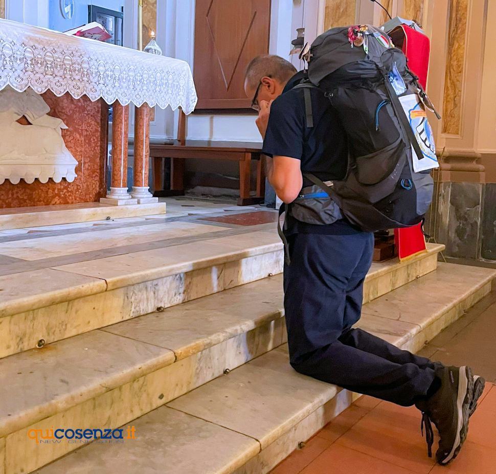 Nel cammino è racchiuso tutto ciò che viviamo ogni giorno nella nostra vita”. Ci aiuti a capire meglio. “Nel cammino ci sono la solitudine, la stanchezza, il bisogno dell’altro, la voglia di fermarsi per gustare la sosta o perché hai come la sensazione di non potercela più fare”. E qual è la sua reazione quando avverte che le forze iniziano a mancare? “Continuo a camminare. L’anno scorso per esempio, avevo le piaghe sotto ai piedi e stavo davvero per mollare. Poi succede che lungo la strada, quando proprio non te lo aspetti, compare una fontanella. Allora ti fermi, ti disseti, trovi il modo di lenire le tue ferite, ti senti rinfrancato e capisci che hai fatto bene a non fermarti”. Un insegnamento prezioso per la vita, sempre capace di sorprenderci, anche quando tutto appare irrimediabilmente perduto. “Chi si mette in cammino si ritrova” e se lo dice lui c’è da crederci, anche se, con un pizzico di rammarico, aggiunge: “Man mano che invecchio, mi stanco sempre più facilmente. All’inizio riuscivo a camminare anche per cinquanta chilometri al giorno, adesso non supero i trenta. A marzo mi sono ammalato di covid in forma grave e sono stato curato con la terapia monoclonale”.