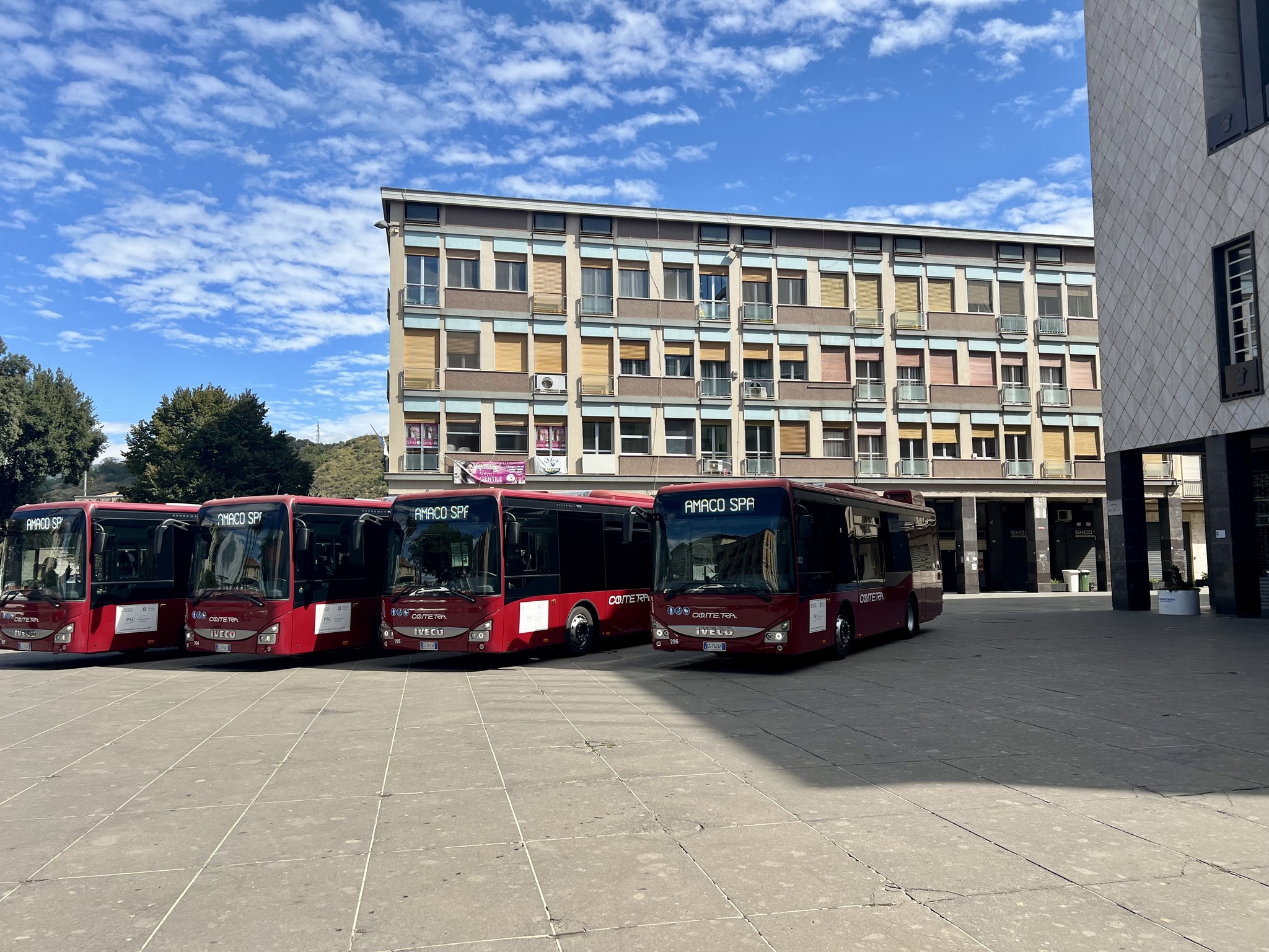 “La consegna dei nuovi autobus da parte di Amaco – ha sottolineato Franz Caruso – consente finalmente di potenziare la flotta di veicoli cui è affidato il trasporto pubblico locale e garantire un servizio più efficace ed efficiente, potendo contare su una dotazione di mezzi più confortevoli, più spaziosi, certamente più moderni e a basso impatto ambientale. L’immissione nel circuito cittadino dei nuovi autobus – ha aggiunto Franz Caruso – ha anche il sapore della resilienza e di una fiduciosa ripartenza per un’azienda che, come tutti sappiamo, ha vissuto e sta vivendo momenti di notevole difficoltà cui l’impegno congiunto dell’Amministrazione comunale, di “Co.Me.Tra. e del curatore della liquidazione giudiziale sta cercando, con tutte le energie a disposizione, di superare, avviando l’azienda verso un nuovo percorso all’insegna della salvaguardia dei livelli occupazionali e del rilancio del servizio che è indispensabile ed irrinunciabile per la città”.