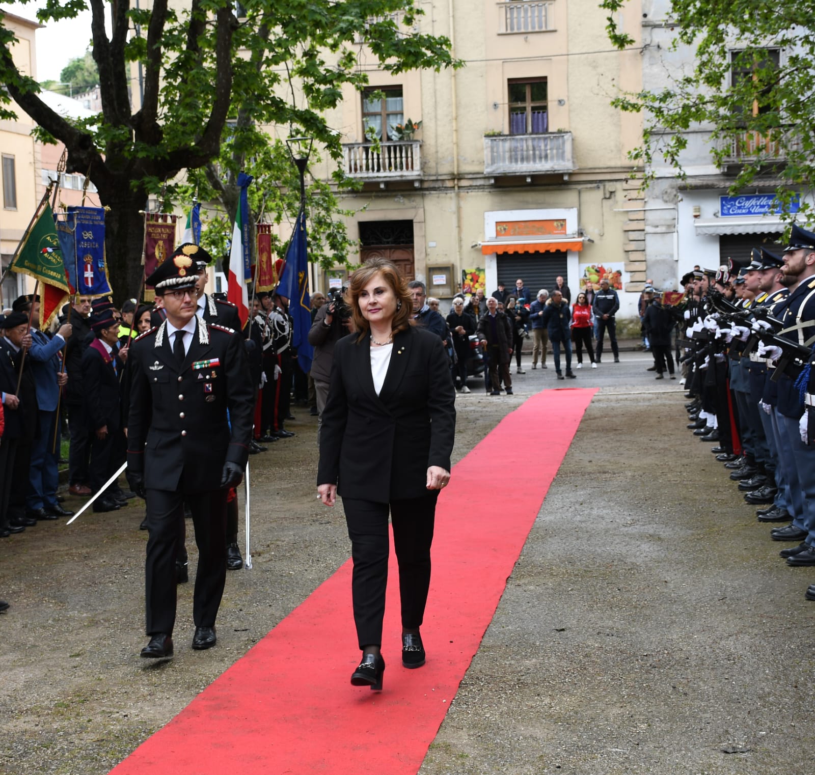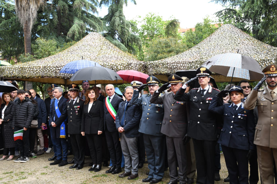 La cerimonia è iniziata con lo schieramento di una formazione interforze, in armi, composta da militari di tutte le Forze Armate – Carabinieri, Esercito con i Bersaglieri del 1^ Reggimento, Marina Militare della Capitaneria di Porto di Corigliano-Rossano, Aeronautica Militare del distaccamento di Montescuro – della Polizia di Stato e dei Corpi Civili dello Stato, della Polizia Penitenziaria, insieme ad unità dei Vigili del Fuoco, della Croce Rossa Italiana e del Corpo Volontarie. Corale la partecipazione delle Associazioni combattentistiche d’Arma con i loro vessilli, del Comune e della Provincia di Cosenza con i rispettivi Gonfaloni.