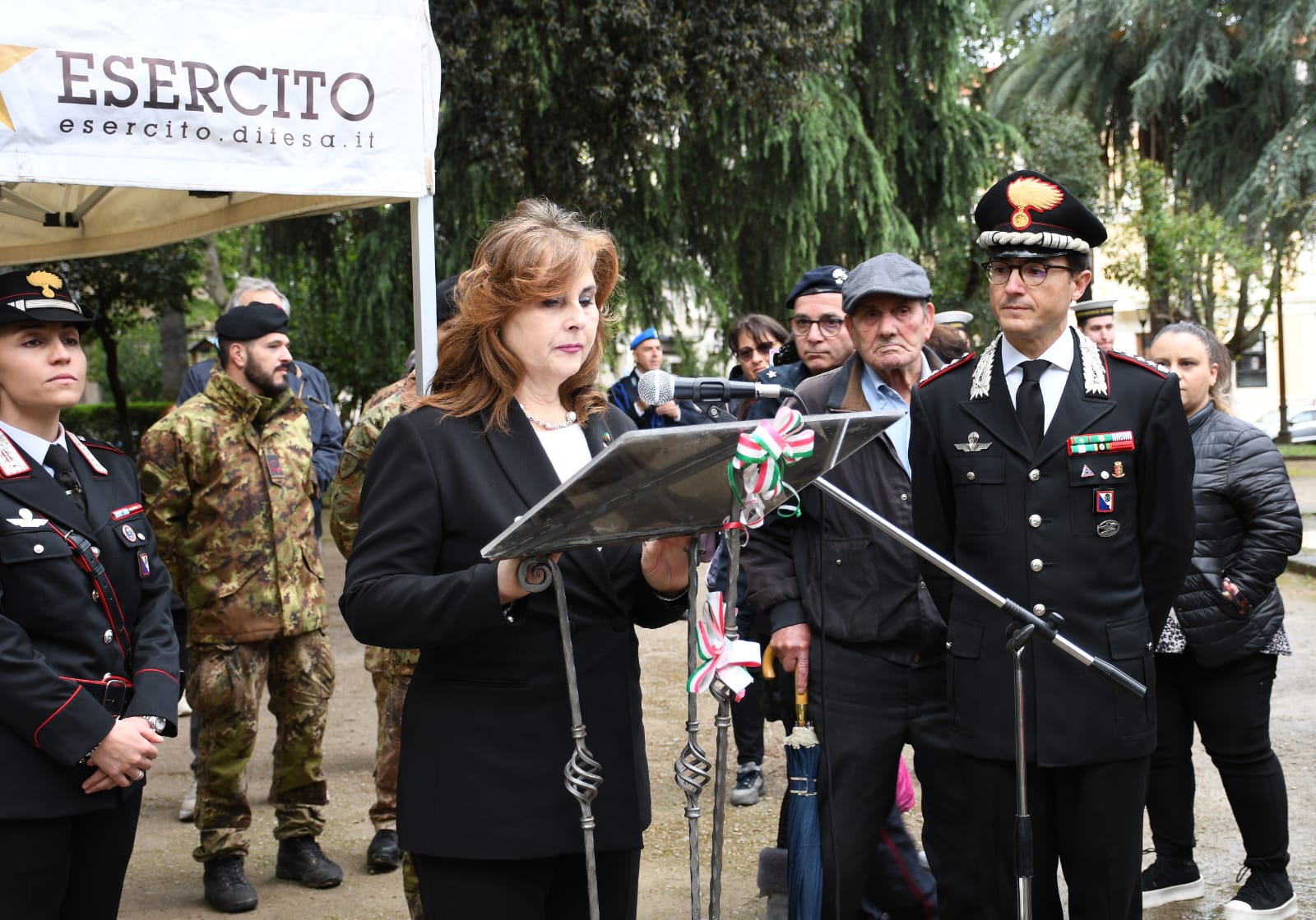 A seguire sono stati resi gli onori al Prefetto di Cosenza, Vittoria CIARAMELLA, che accompagnata dal Comandante Provinciale dei Carabinieri, rappresentante delle Forze Armate, ha dapprima passato in rassegna i reparti in armi sulle note della “Fedelissima” e quindi presenziato alla tradizionale cerimonia dell’alzabandiera, scandita dalle note dell’”Inno di Mameli”. A seguire, la lettura solenne del messaggio del Ministro della Difesa Guido Crosetto. La “Marcia del Piave” ed il “Silenzio d’Ordinanza” hanno fatto, quindi, da cornice alla deposizione di una corona d’alloro presso il Monumento ai Caduti, doveroso e riconoscente omaggio alla memoria di quanti, militari e civili, hanno sacrificato la propria vita ed i propri affetti per la riconquista di ogni forma di libertà, sociale, etica e politica e per l’affermazione dello stato di diritto, della Repubblica Italiana e della sua Costituzione.