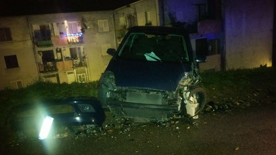 L’auto è andata completamente distrutta. Sul posto vigili del fuoco e carabinieri. La bottiglia è stata posta sotto sequestro