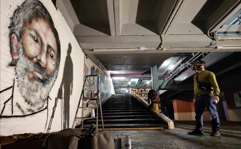 Zeta aveva realizzato l'opera su uno dei muri del polifunzionale, un vigilantes lo costringe a cancellarlo