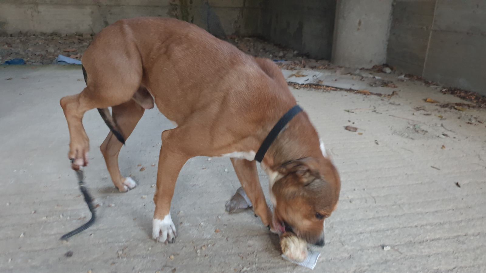 I due cani risultavano malnutriti, mostravano segni di sofferenza fisica e psicologica e, uno dei due, aveva infisso, in una zampa, un moschettone di ferro