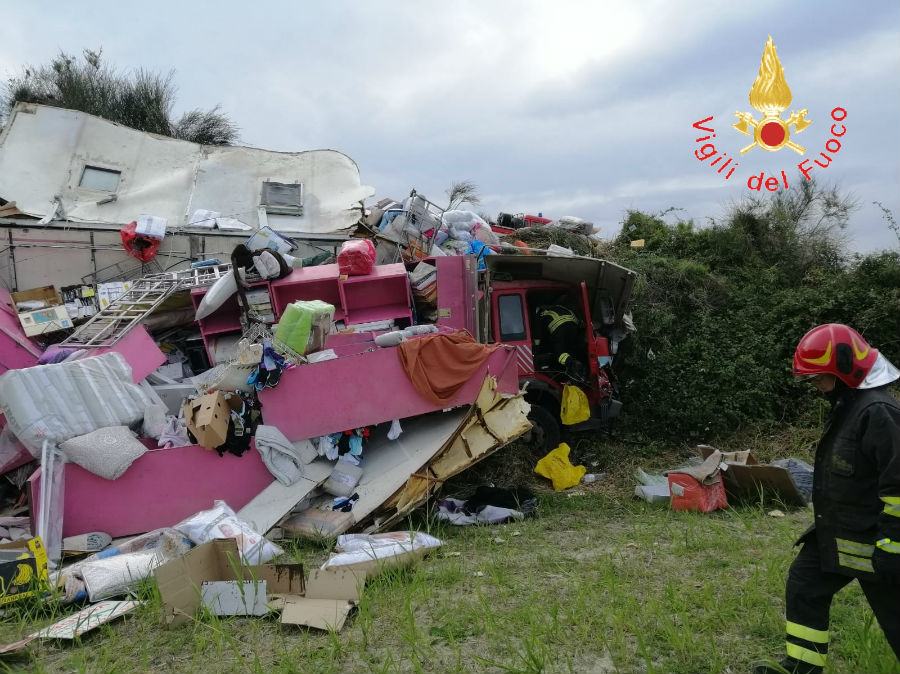 Coinvolto nel sinistro un autocarro allestito ad attività commerciale di abbigliamento per i mercati rionali