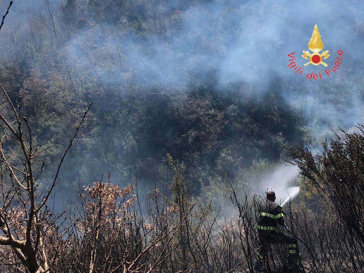 Squadre dei Vigili del Fuoco del Comando di Catanzaro sono impegnate da questa mattina per un incendio di bosco e macchia mediterranea nella provincia