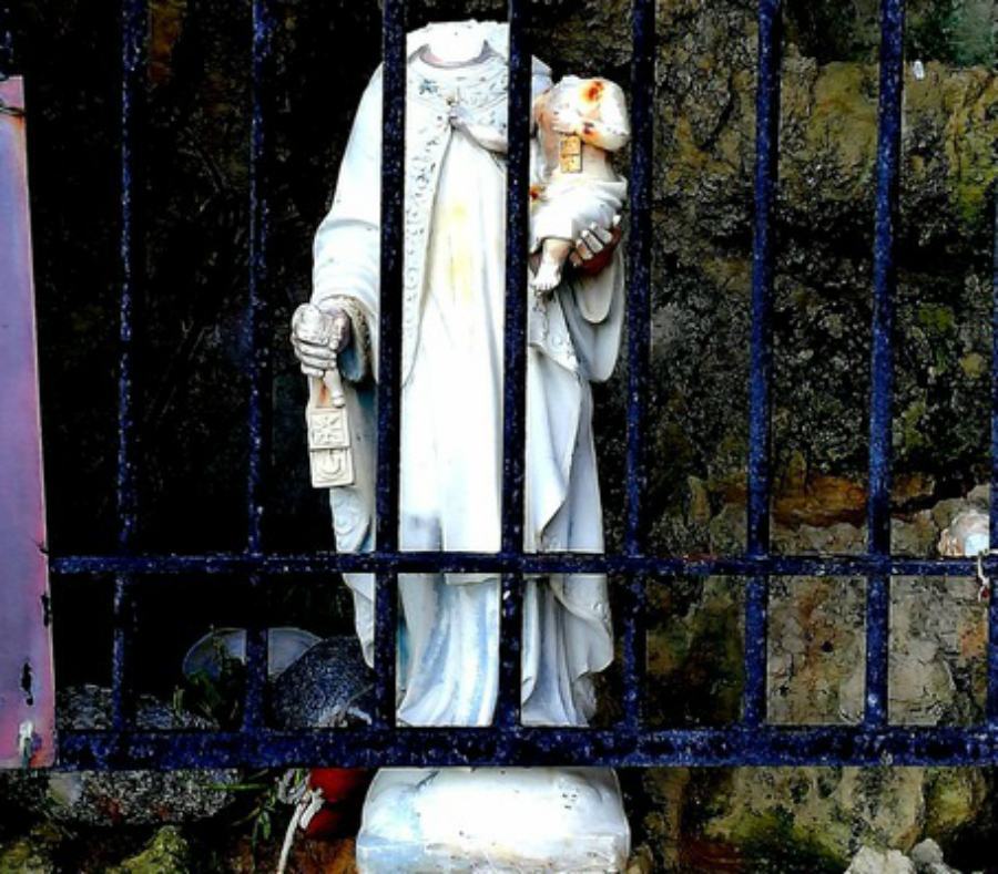 Le due statue sono state decapitate e le teste lasciate sul posto. Indagano i carabinieri
