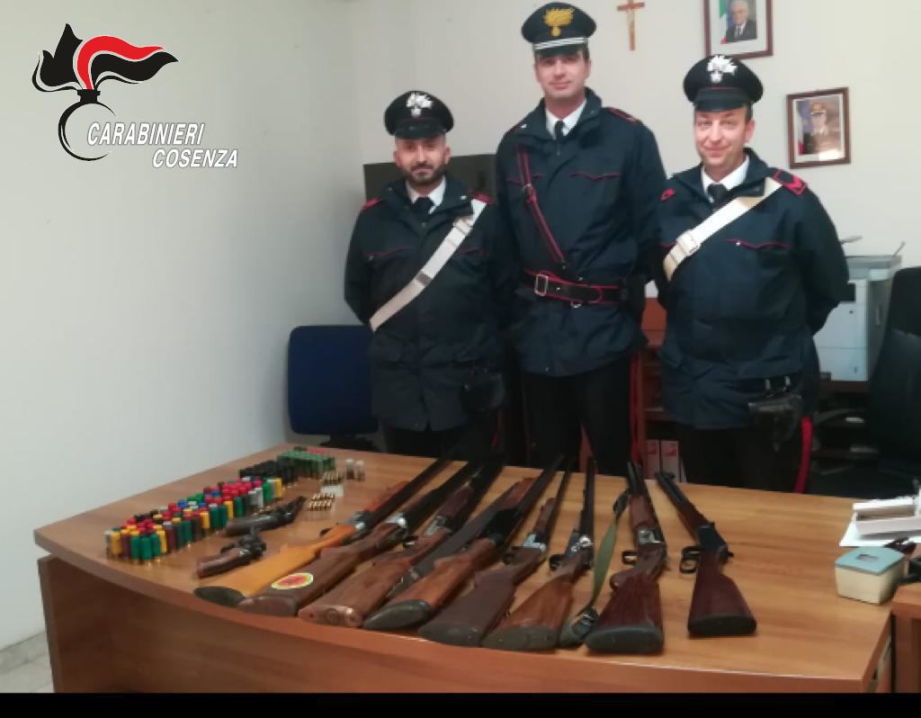 Durante l’attività, i militari, nel corso della perquisizione domiciliare hanno rinvenuto all’interno della cassaforte 8 fucili, 2 pistole e 216 munizioni