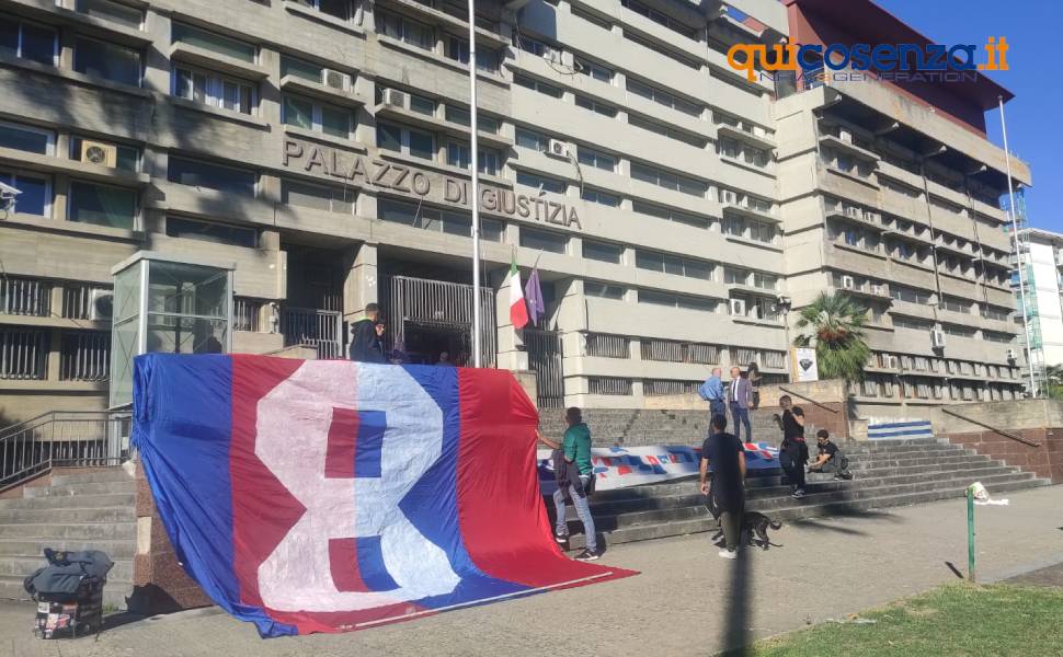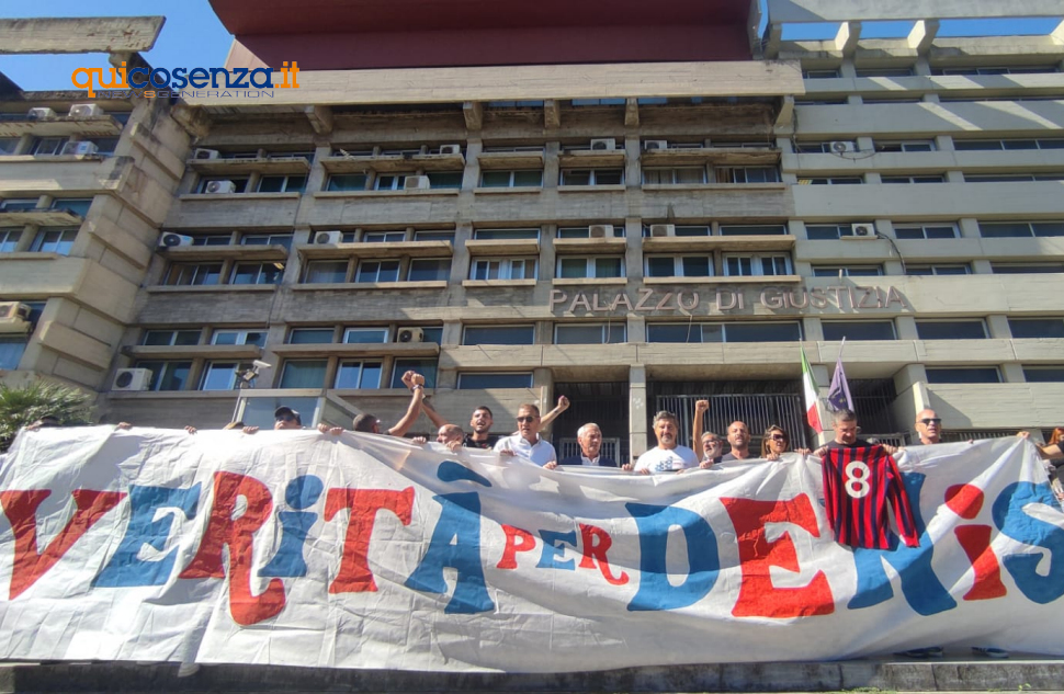 COSENZA – Hanno deciso di aspettare davanti al Palazzo di Giustizia dove oggi, potrebbe essere emessa la sentenza dopo il lungo e intricato processo per la morte di Donato Bergamini, a quasi 35 anni, nei confronti di Isabelle Internò. Un gruppo di tifosi rossoblù ha posizionato sulle scalinate e all’ingresso del Tribunale lo striscione con i colori rosso e blu, il numero ‘8’ e anche quello con su scritto “Verità per Denis”. Presenti anche alcuni ex calciatori del Cosenza Calcio: Michele Padovano, Ciccio Marino, Alberto Urban, Gigi Simoni, Ugo Napolitano e con loro anche Padre Fedele Bisceglia.