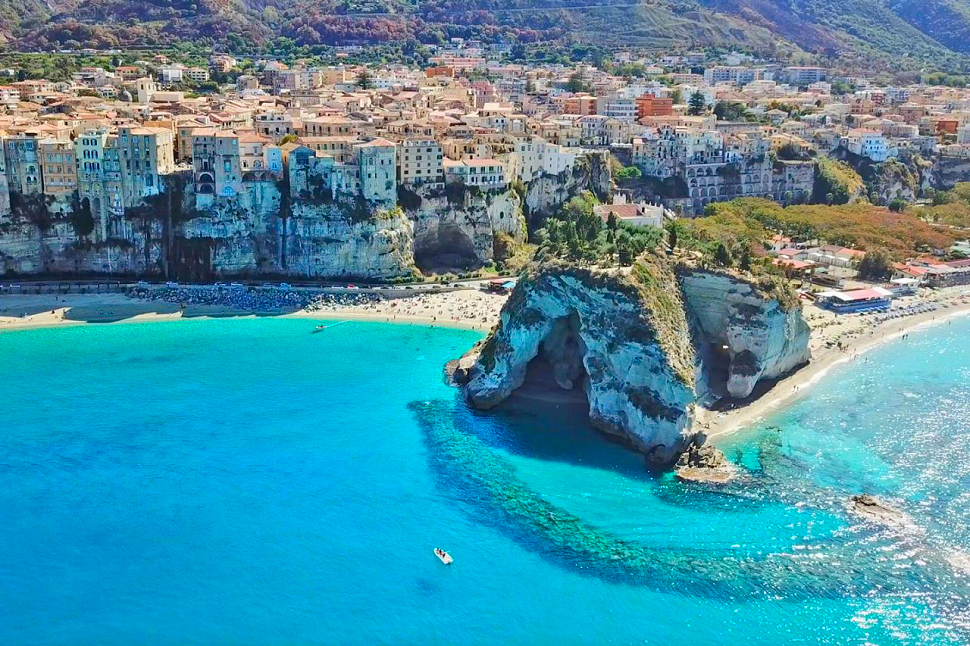 Tra le località più suggestive ci sono Tropea e Capo Vaticano. Tropea, regina e “Perla del Tirreno”, è caratterizzata da un centro storico incantevole, affacciato sulla scogliera che domina il mare. Le sue case colorate, le chiese e i palazzi nobiliari rendono il centro storico un vero gioiello architettonico. Il centro storico di Tropea si sviluppa intorno alla splendida Cattedrale di Santa Maria dell’Isola. Costruit nel XII secolo su una piccola isoletta di fronte alla città. Le strade del centro storico sono caratterizzate da case in pietra, balconi fioriti e cortili interni, che creano un’atmosfera incantevole. In cima alla scogliera, la vista panoramica sul mare e sulla spiaggia di Tropea è semplicemente mozzafiato.