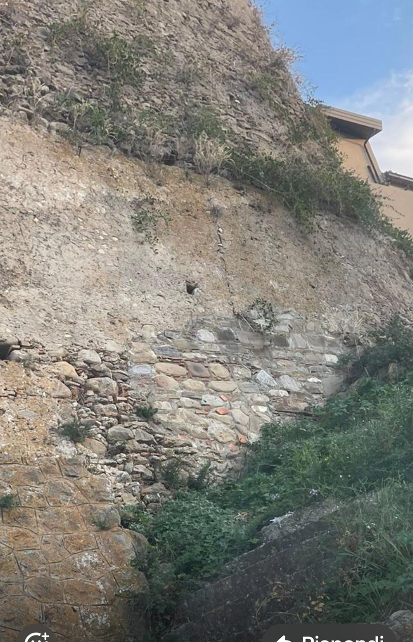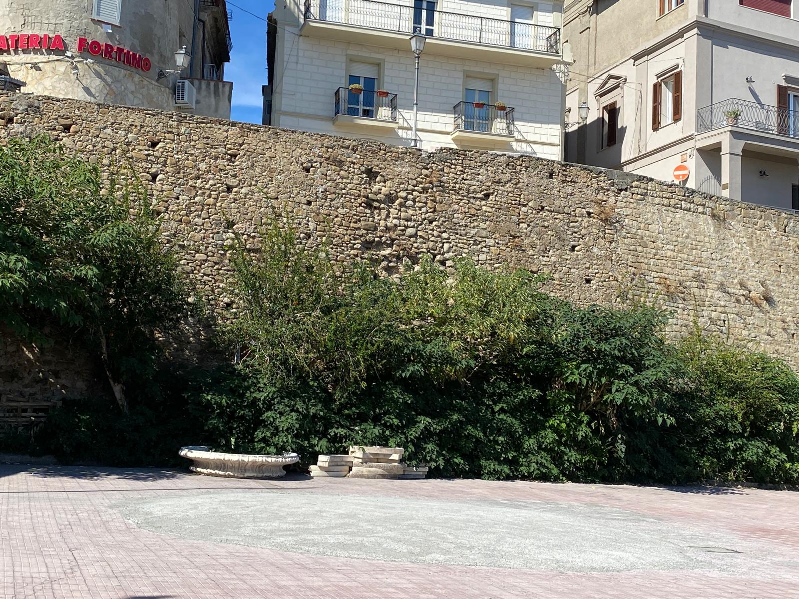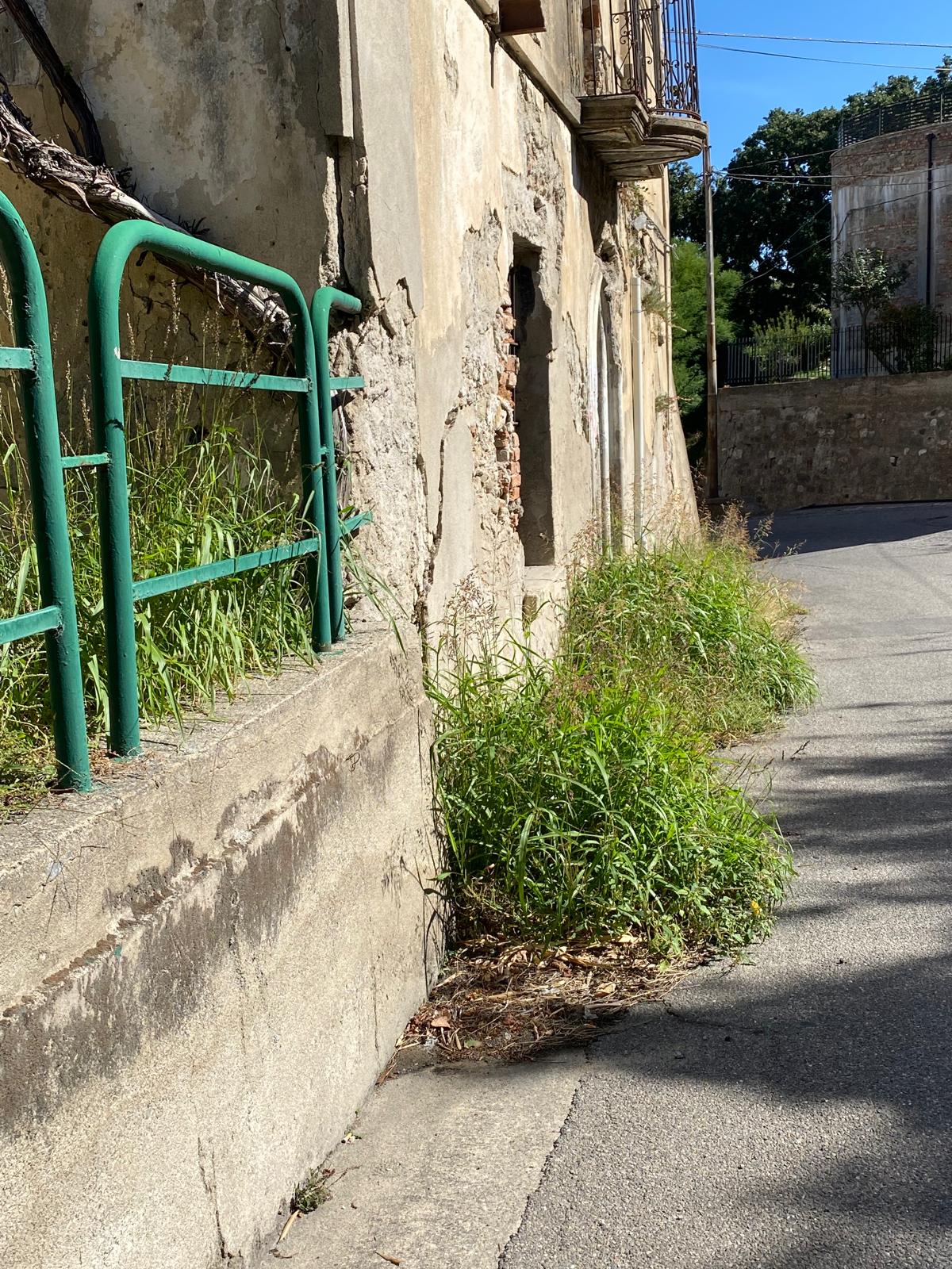Cinta muraria infestata da erbacce, centro storico abbandonato