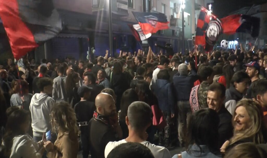 Subito dopo il fischio finale, infatti, i tifosi si sono riversati per le strade del centro città per festeggiare un’altra salvezza della squadra rossoblù. Tutti con sciarpe, bandiere e magliette per colorare una festa, alla quale, qualche mese fa, ma anche questa sera, prima del 95esimo, in pochi credevano.