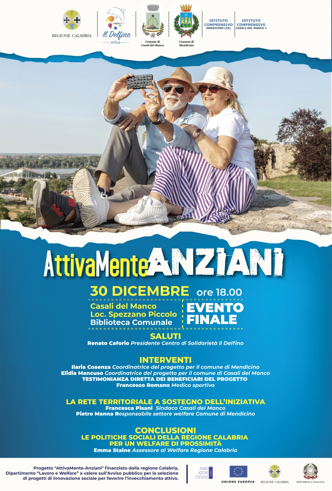 CASALI DEL MANCO (CS) – Si sono conclusi lo scorso 21 dicembre, con un evento gastronomico, i laboratori del progetto “AttivaMente Anziani”, basato sullo scambio inter e intra generazionale, che ha coinvolto 100 donne e uomini over 60 residenti nei comuni di Casali del Manco e Mendicino, con la partecipazione degli alunni frequentanti gli istituti comprensivi aderenti al partenariato e gli stranieri ospiti dei centri SAI (minori e ordinari) presenti sui territori.