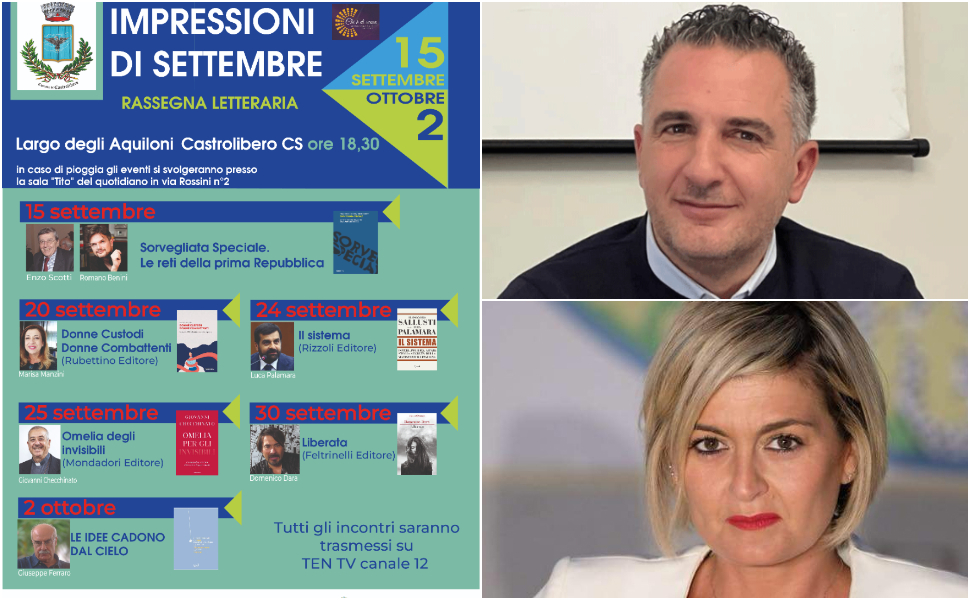 Venerdì 20 settembre sarà la volta del magistrato Marisa Manzini con il libro “Donne Custodi, donne combattenti” (Rubettino Editore) a cui seguirà martedì 24 settembre la presentazione del libro “Il sistema” con la presenza dell’ex magistrato Luca Palamara. Mercoledì 25 settembre ospite della rassegna il vescovo di Cosenza Bisignano, mons. Giovanni Checchinato con il libro “Omelia per gli invisibili” edito dalla Mondadori.