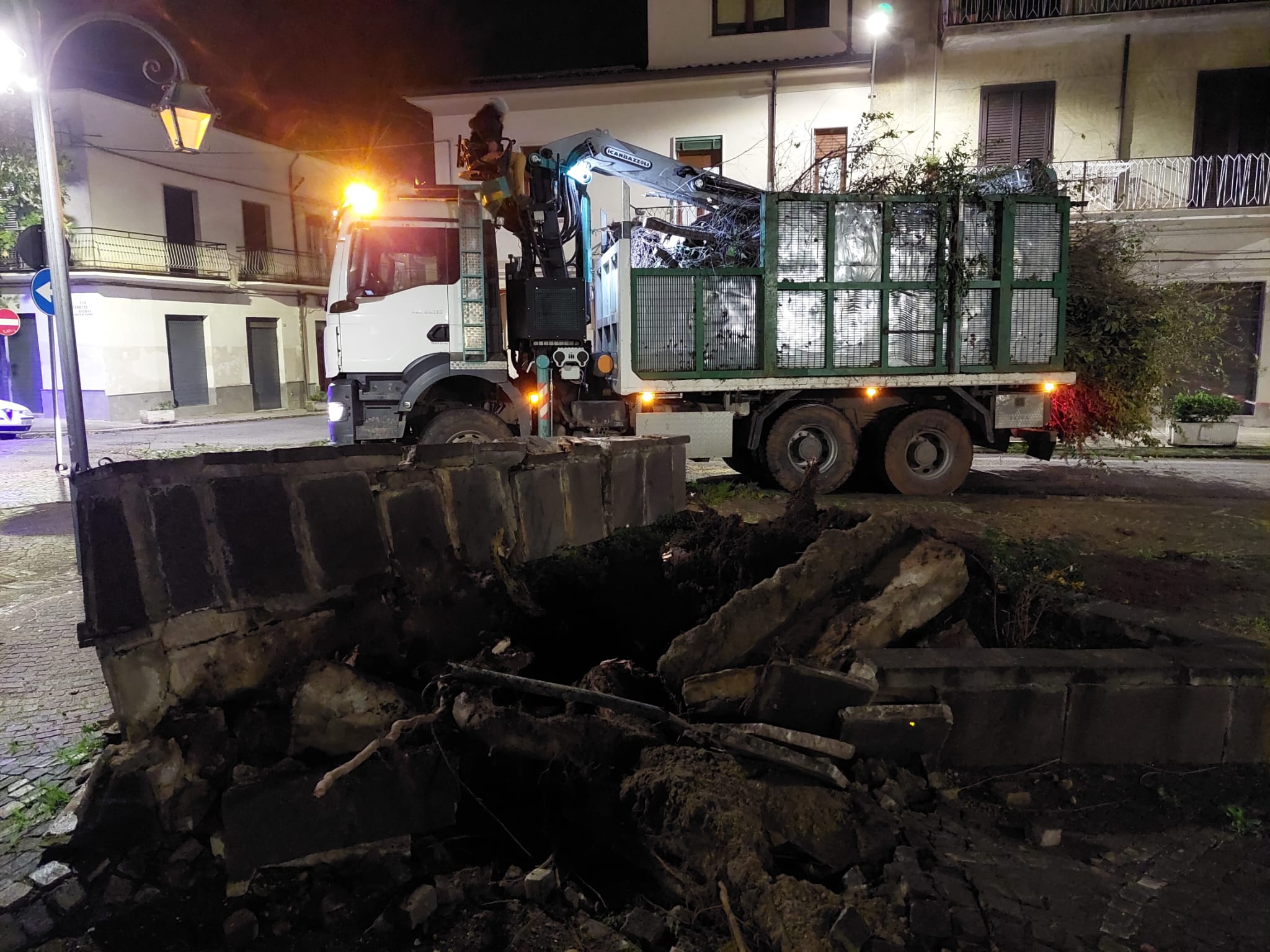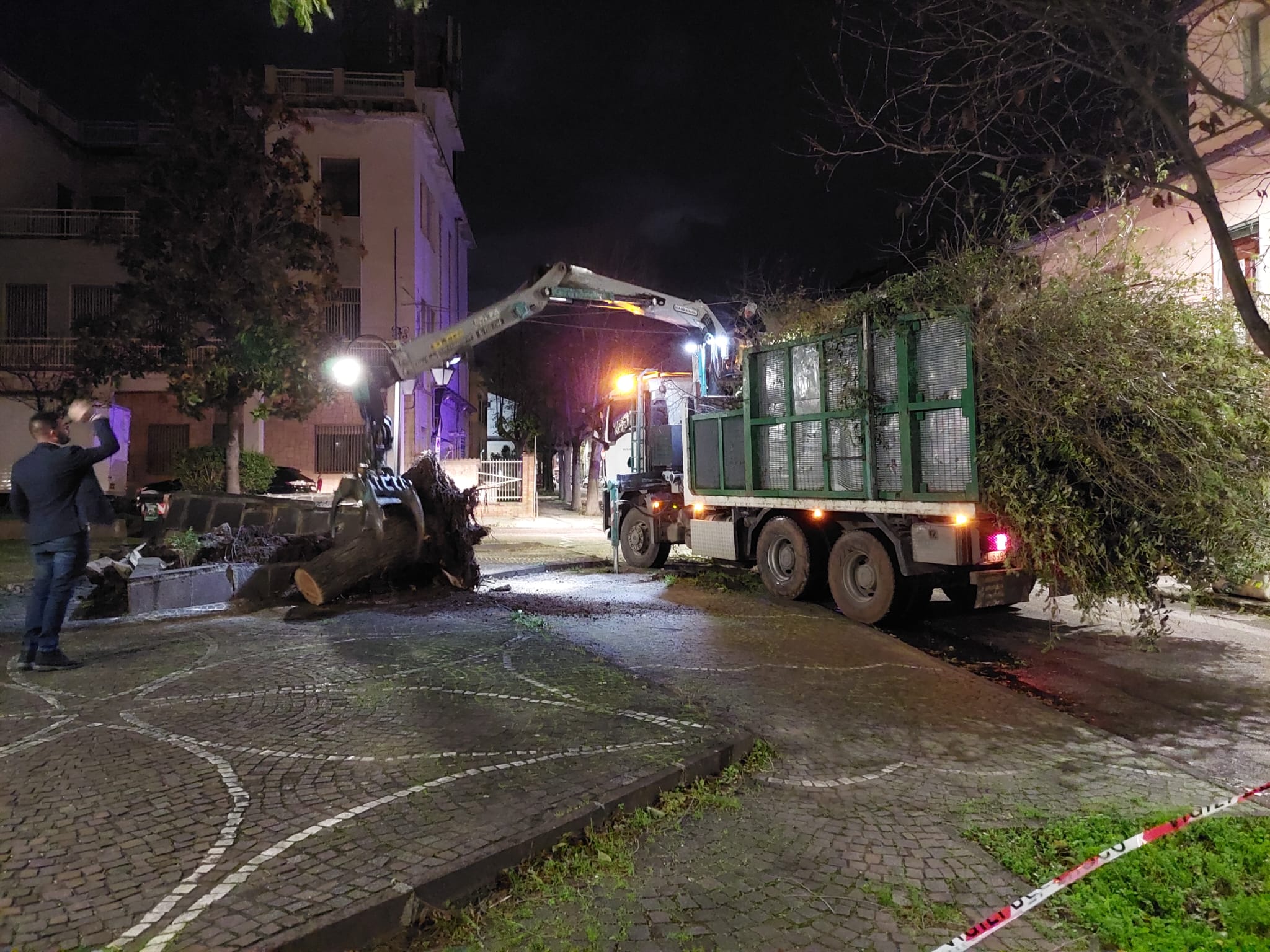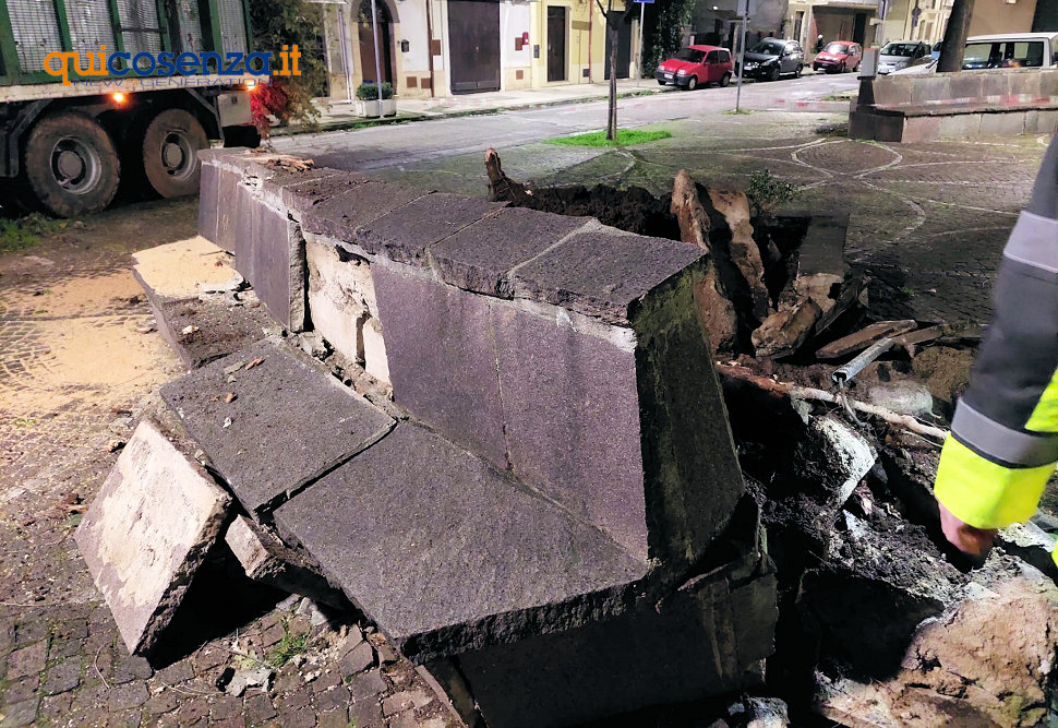 Castrovillari, le fortissime raffiche di vento sradicano due alberi in piazza Matteotti – FOTO