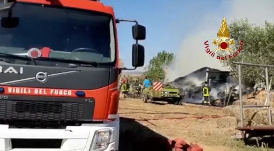 L’intervento nel primo pomeriggio di ieri in località Marinella di Montalto Uffugo. L’incendio ha interessato un capanno adibito a fienile in legno