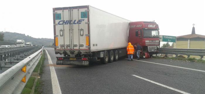 Un mezzo pesante, di traverso sulla carreggiata nord della Salerno-Reggio Calabria, la circolazione è stata deviata a Montalto con rientro a Torano