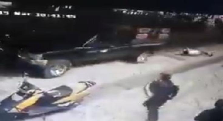 Trascinato sull’asfalto da un pick-up in corsa, è stato salvato dalla polizia