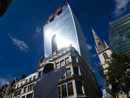 LONDRA – Incredibile il caso sotto uno dei nuovi simboli della City di Londra, il “Walkie Talkie”.