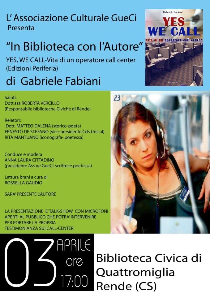 COSENZA – Sarà presentato giorno 3 Aprile 2013 ore 17:00 presso la Biblioteca Civica di Rende (Quattromiglia Piazza Santo Sergio), il libro “Yes We Call- Vita...