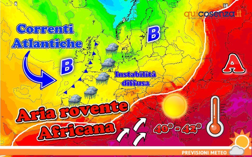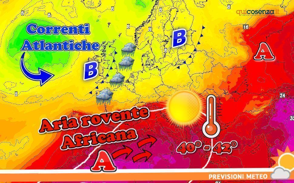 L'anticiclone africano si espande con maggiore veemenza con temperature sempre più roventi, allerta alta per gli incendi