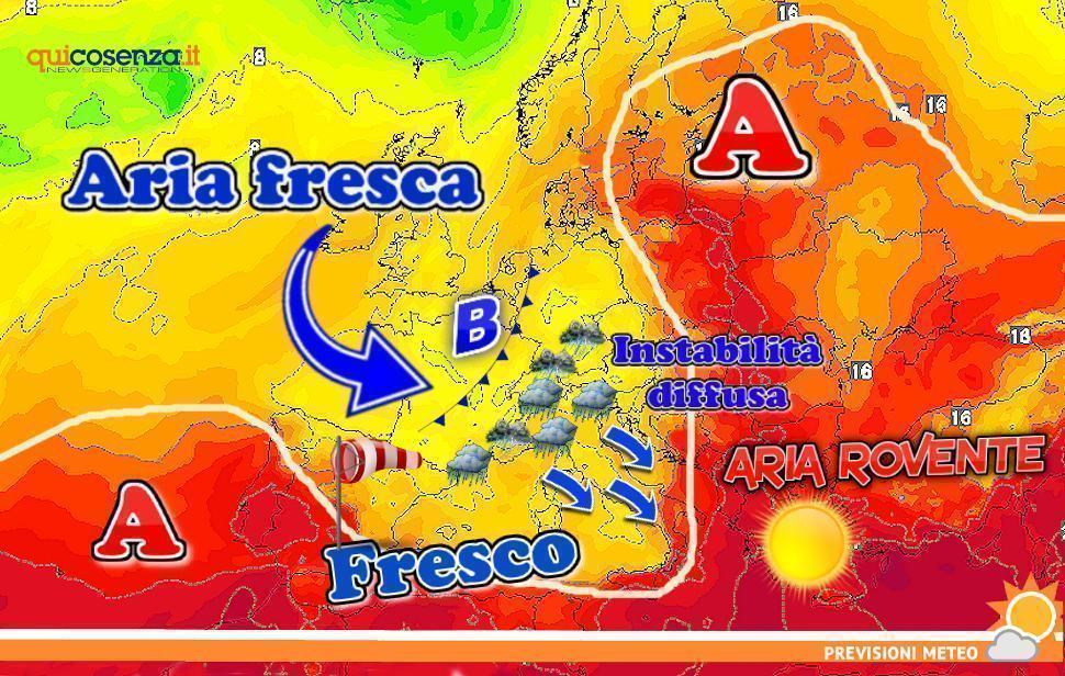 Un vortice depressionario nel weekend raggiungerà anche il Sud dove nel frattempo l'aria fresca avrà spazzato via quella rovente