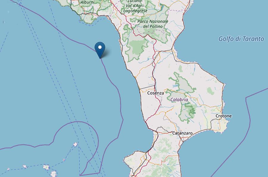 Una scossa di terremoto di magnitudo 3.1 è stata registrata al largo della costa tirrenica calabrese in provincia di Cosenza