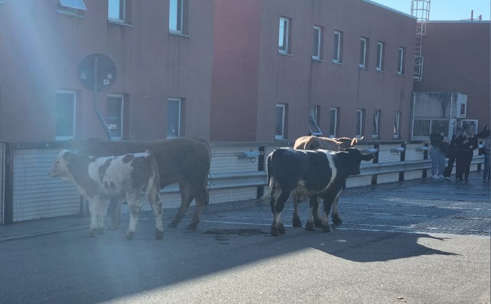 Ecco il video dei bovini a spasso nell'ateneo, nei pressi del bar Conca d'Oro, tra gli sguardi di studenti increduli e divertiti dalla scena