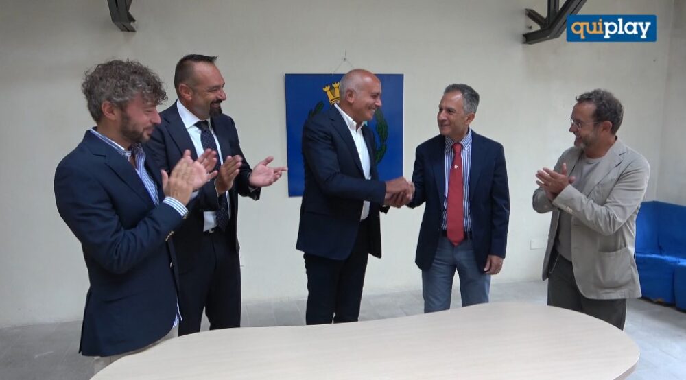 COSENZA – Il sindaco di Cosenza Franz Caruso ha consegnato al Rettore dell’Università della Calabria, Nicola Leone, le chiavi dello storico “Palazzo Spadafora”, di proprietà del Comune, che ospiterà le dieci start-up, selezionate dall’Unical, per la realizzazione del progetto “Open incubator”, inserito nel quadro delle iniziative finanziate dal Ministero della Cultura per la rigenerazione e riqualificazione urbana della città nell’ambito del Contratto Istituzionale di Sviluppo “Cosenza-Centro Storico”.