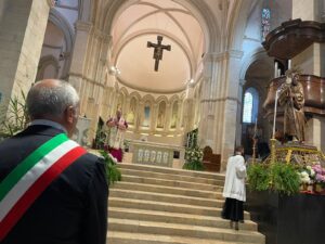 Il primo cittadino ha preso parte alla fase conclusiva delle celebrazioni, mentre nella tradizionale processione, partita subito dopo la Celebrazione dei Vespri, Franz Caruso è stato rappresentato dal consigliere delegato ai rapporti con le comunità religiose, Francesco Turco.