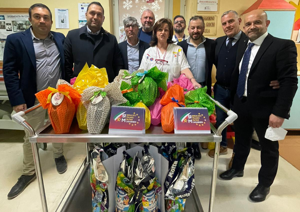 COSENZA – Ieri mattina, la segreteria provinciale del SIM Carabinieri di Cosenza composta dai segretari Bianco Federico, Amato Gaspare, Maisto Giampaolo, Arnone Francesco, Durso Rocco accompagnati dal segretario regionale Cassata Gaetano dal segretario generale Aggiunto nazionale Antonio Aprile, hanno compiuto un gesto di generosità e solidarietà consegnando uova di Pasqua ai bambini del reparto di pediatria. Questo atto di gentilezza porterà gioia ai bambini che trascorreranno la settimana di festa in ospedale, grazie alle uova donate dal SimCarabinieri.