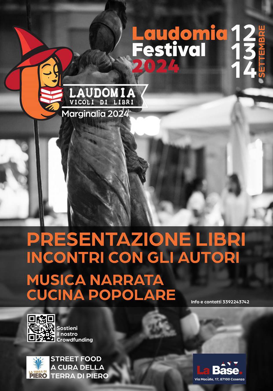 L’ultima giornata di Laudomia inizia alle 18 di sabato 14 settembre alla statua de L’Accoccolata con Manuela Magnelli che dialoga con Antonio Mazzeo su “La scuola va alla guerra”; alle 19, a La grande bagnante, Giancarlo Costabile parlerà con la redazione della rivista Registro sconnesso che presenterà il sesto numero. Alle 20, alla statua dei Grandi archeologi, Maria Giovanna Rullo e Franca Gareffa dialogano con Elena Zizioli, Giulia Franchi e Lisa Stillo del libro “L’altra scuola”. Ultimo concerto narrato, sempre alle 21.30 a La Base, vedrà Francesco Ficco presentare il disco dei Lager “Outer than yesterday”. In mattinata al Csoa Rialzo su viale Giacomo Mancini, il Gruppo d’acquisto solidale ha organizzato un aperitivo per Laudomia che sarà un’occasione per incontrare autrici e autori del festival.