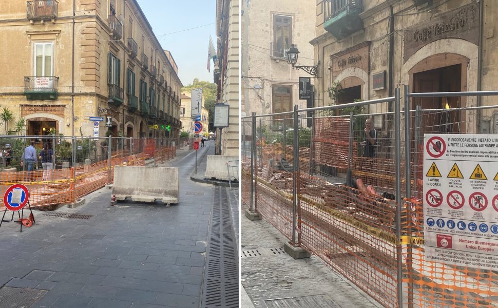 COSENZA – “Ringrazieremo a vita questa splendida amministrazione per avere previsto i lavori durante le manifestazioni al centro storico… questa sera con oltre 5mila presenze per il concerto di Lazza, a soli 100 metri da noi, al Caffè Telesio hanno pensato – causa lavori – di inserire il divieto di passaggio anche pedonale… menti pensanti uniche!”. È quanto ha scritto via social il titolare del noto e storico locale del centro di Cosenza ieri sera a margine del live del noto cantente.