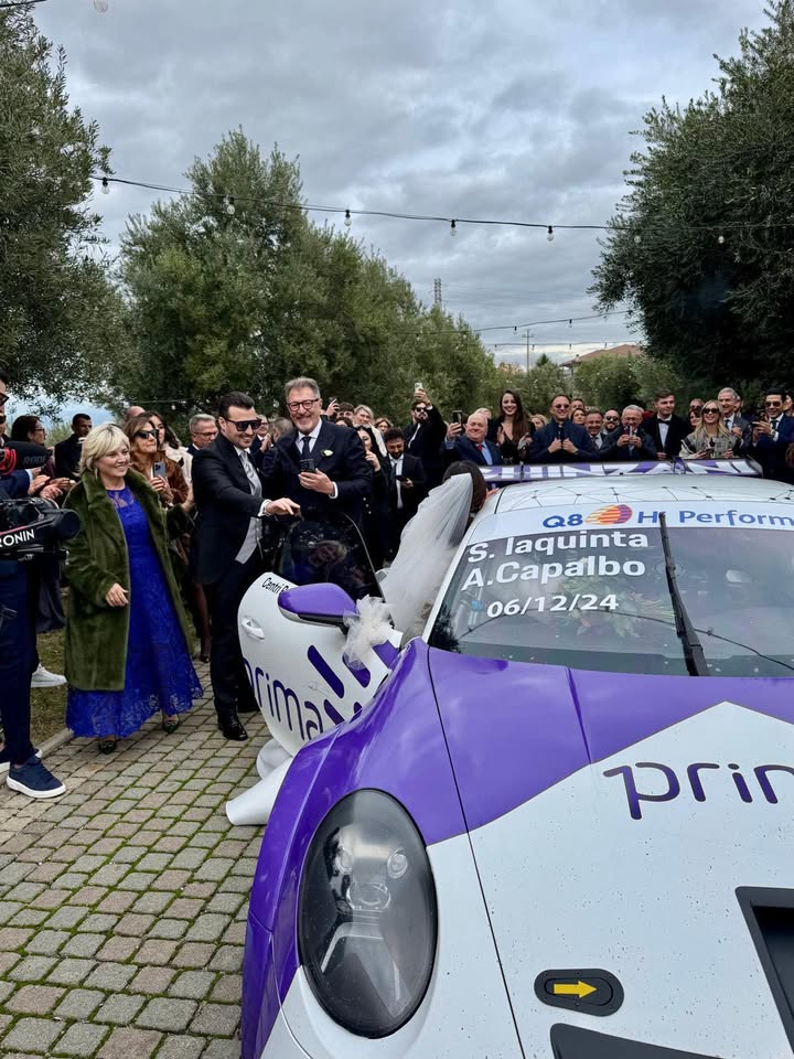 Un’emozione che ha coinvolto tutti gli invitati alle nozze del campione cosentino, tra cui numerosi altri automobilisti di fama, amici e personaggi illustri, come il Manager motorsport di Porsche Italia, il titolare del team Ghizzani ed anche il proprietario della nota torrefazione Caffè Borbone, loro testimone di nozze.