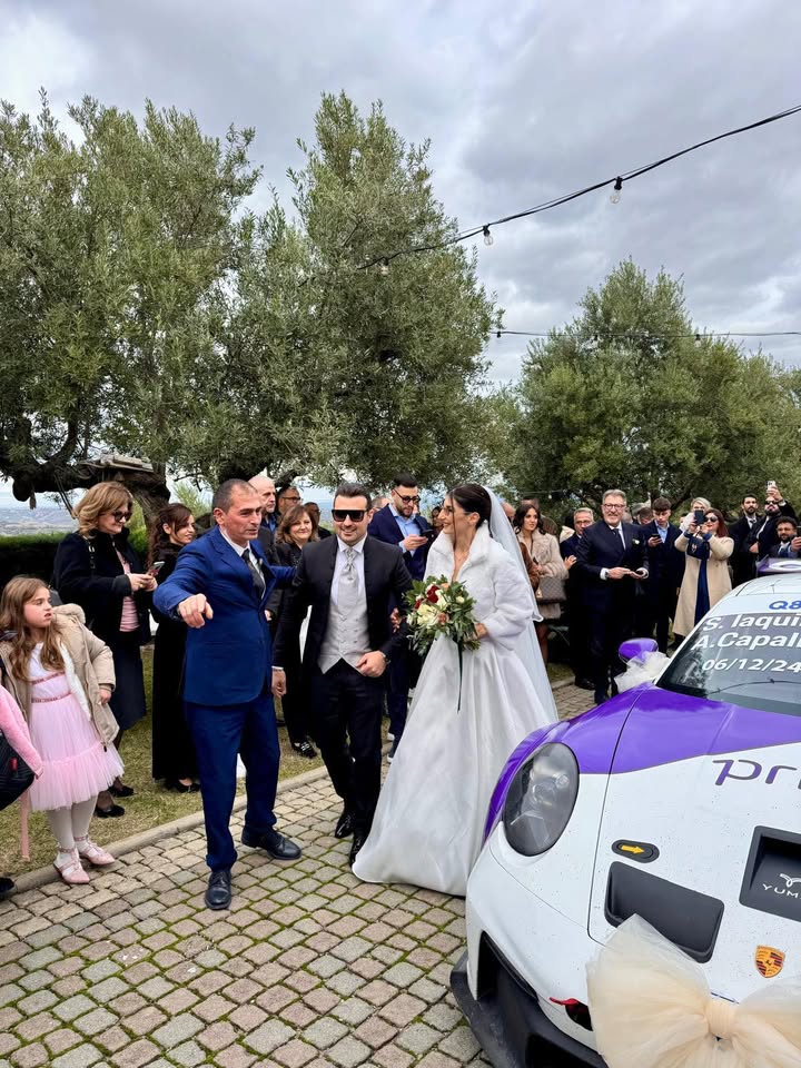 Un’emozione che ha coinvolto tutti gli invitati alle nozze del campione cosentino, tra cui numerosi altri automobilisti di fama, amici e personaggi illustri, come il Manager motorsport di Porsche Italia, il titolare del team Ghizzani ed anche il proprietario della nota torrefazione Caffè Borbone, loro testimone di nozze.