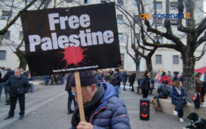 COSENZA – Organizzato dal movimento “La Base” di Cosenza, in piazza XI Settembre lungo Corso Mazzini, è in corso di svolgimento un sit-it pacifico di solidarietà per la Palestina. Come sta avvenendo in diverse città italiane, va in scena la protesta contro quello che i manifestanti, richiamando anche quanto dichiarato dalle istituzioni internazionali, definiscono un “genocidio”, vista la portata e l’intenzionalità della distruzione causata dall’esercito israeliano.
