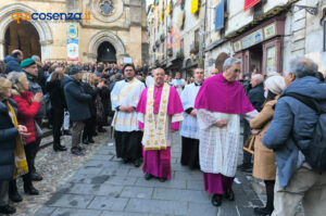 Alla processione non è presente il Sindaco di Cosenza Franz Caruso che non ha partecipato neanche alla messa di questa mattina nel Duomo dove, in rappresentanza del Comune, era presente l’Assessore Damiano Covelli. Il primo cittadino da alcuni giorni è fuori città per una settimana bianca. Alla processione, come mostra la nostra foto, con la fascia tricolore il consigliere comunale Francesco Turco molto vicino al Sindaco.