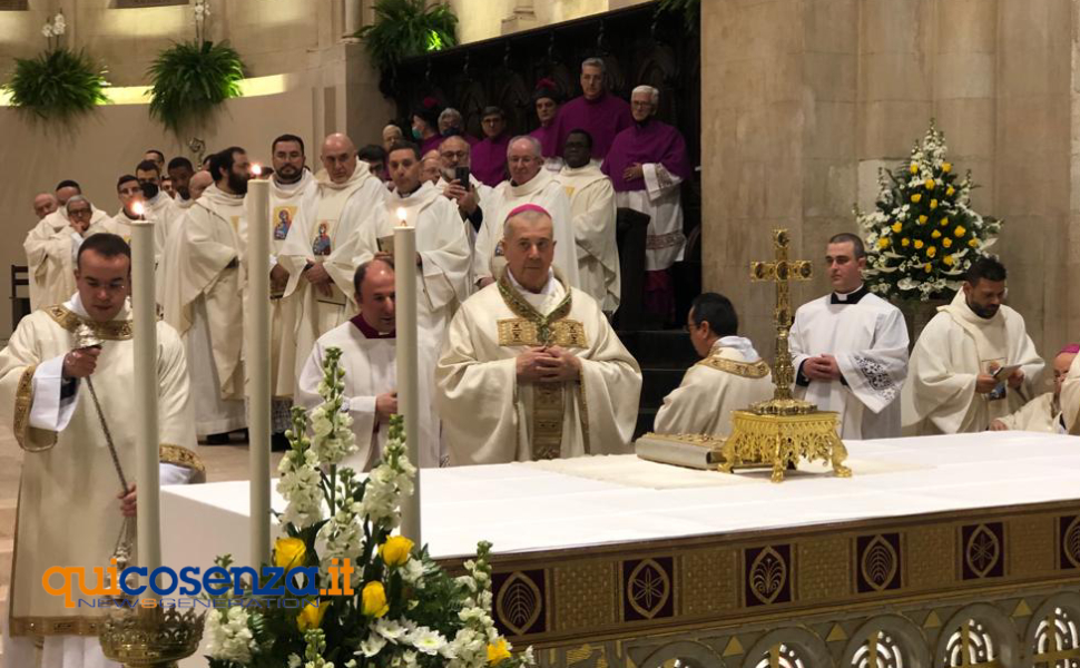 Sono le parole dell’omelia di mons. Checchinato accolto in una Cattedrale gremita di fedeli ma anche di rappresentanti delle istituzioni. Tra i presenti il sindaco di Cosenza, Franz Caruso, il Prefetto Vittoria Ciaramella, la presidente della Provincia di Cosenza Rosaria Succurro, il procuratore Mario Spagnuolo, il presidente della Camera di Commercio Klaus Algieri, il rettore dell’Unical, Nicola Leone e l’assessore regionale al Welfare Emma Staine e l’assessore all’agricoltura della Regione, Gianluca Gallo.