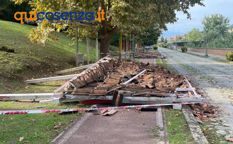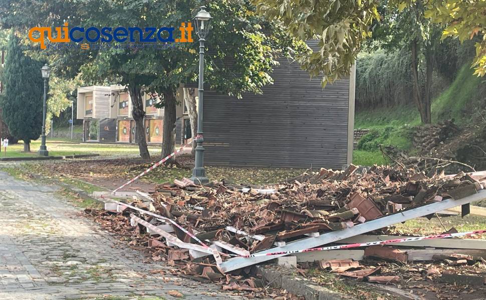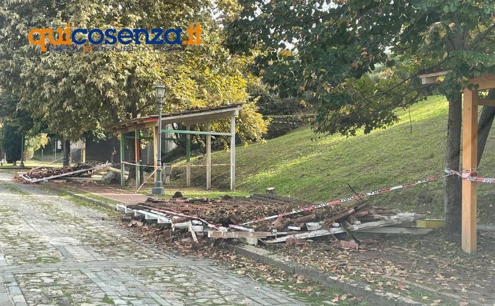 COSENZA – Sono letteralmente venuti giù due gazebo in legno, situati sul lungofiume, un tempo noto come ‘boulevard’. Due strutture situate a pochi metri dai cubi, i cosiddetti BoCS Art, che in passato erano usate come box espositivi durante rassegne e manifestazioni, hanno ceduto e sono state recintate con del nastro bianco e rosso. Un’area, quella di via Lungo Crati, ormai da tempo abbandonata tanto che, nei giorni scorsi, sul posto si erano recati anche i consiglieri di minoranza del Comune di Cosenza, per evidenziare lo stato di abbandono della zona.