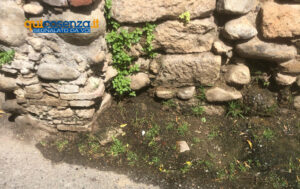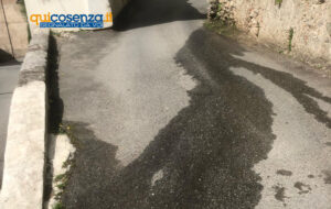 COSENZA – Da oltre un anno, i residenti del quartiere “Paparelle”, una delle zone più suggestive del centro storico di Cosenza, a pochi passi dall’Archivio di Stato, segnalano una grossa problematica legata alla fuoriuscita costante d’acqua che ha lentamente eroso la strada, fino a provocare il cedimento di un muro di contenimento.
