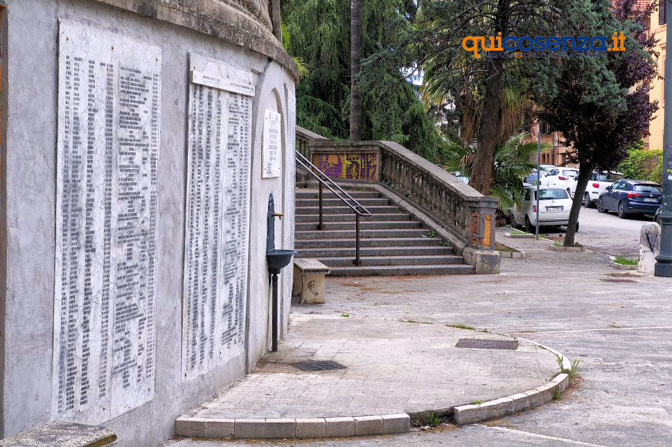 Incuria e sporcizia ma anche atti di vandalismo. Più volte, infatti, il monumento con i nomi dei caduti, voluto da Giacomo Mancini su sollecitazione di Luigi Aquino, patriota cosentino, erano state prese di mira e imbrattate anche con scritte offensive fatte con una bomboletta spry al monumento.