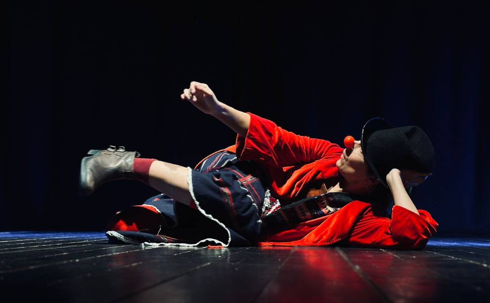 «Nasce dopo diversi anni di formazione con la docente Merry Conway, ed è strutturato sul metodo del Devised Theatre, lavoro collaborativo d’improvvisazione di un ensemble performativo, dedicato al mondo femminile e alla poetica del clown. Lo sguardo del clown guida alla creazione delle condizioni per uno spazio nuovo, dove l’esagerazione dei limiti, in contrasto con le restrizioni sociali e personali, diventano la forza, l’impulso, l’energia, per trasformare il modo di guardare la realtá, e così la Donna» dichiara Maria Grazia Bisurgi, performer di ConimieiOcchi, in scena con Audrey Chesseboeuf, con la facilitazione del processo creativo di Francesco Votano, e le luci e i suoni di Sofia Battistini.