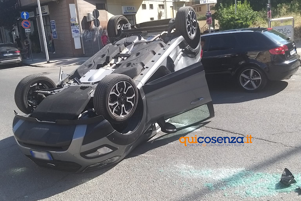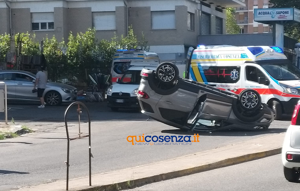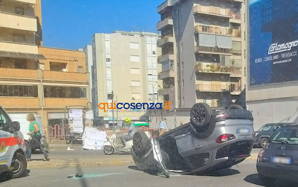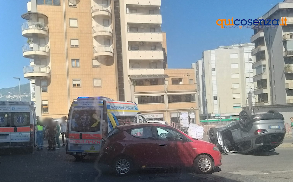 Cosenza, un’auto si ribalta dopo lo scontro con un’ambulanza: un ferito – FOTO
