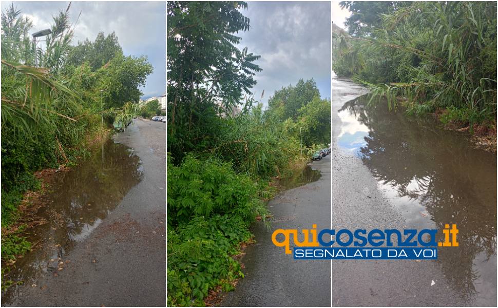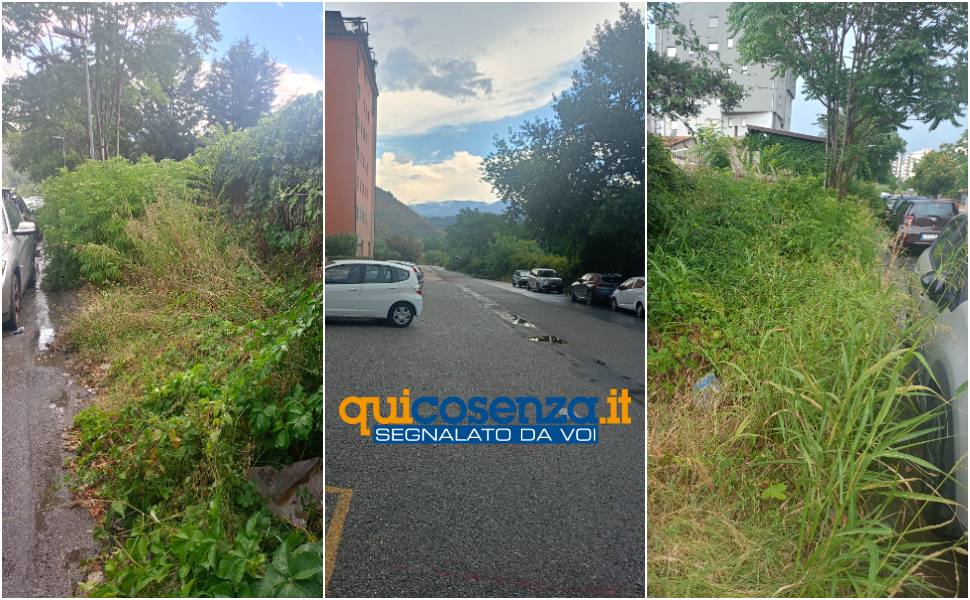 COSENZA – Erba alta, canne che invadono la carreggiata, tombini ostruiti da terra e fogliame, rifiuti abbandonati. Tutto questo da oltre un anno. È la situazione che si presenta quotidianamente in via Pietro Buffone, una traversa di via Popilia, a pochi minuti a piedi dal centro di Cosenza. A segnalarla è Marco Francesco Perri, residente nella zona, che parla di una vera e propria “giungla urbana”, dove il degrado e l’abbandono spingono anche all’inciviltà. “Sacchi dell’immondizia lasciati lì da più di un anno sono diventati una discarica a cielo aperto, proprio davanti a condomini e a una villetta frequentata da molti bambini”.
