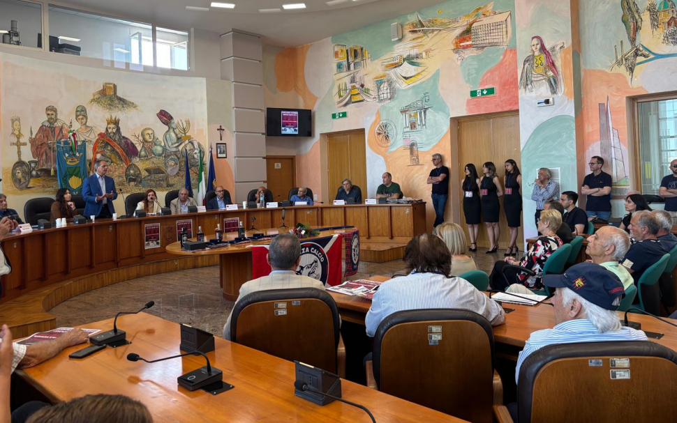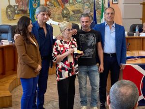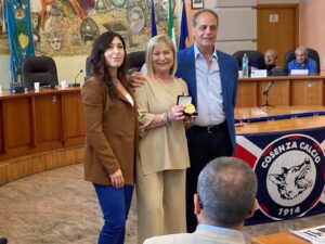 Ma l’emozione si accende ancora di più quando fanno il loro ingresso nella sala delle adunanze di Palazzo dei Bruzi, Donata Bergamini, sorella di Denis Bergamini, Fabio e Marcella Catena, rispettivamente fratello e mamma di Massimiliano Catena, e Kevin e Ylenia Marulla, figli del bomber rossoblù Gigi Marulla.
