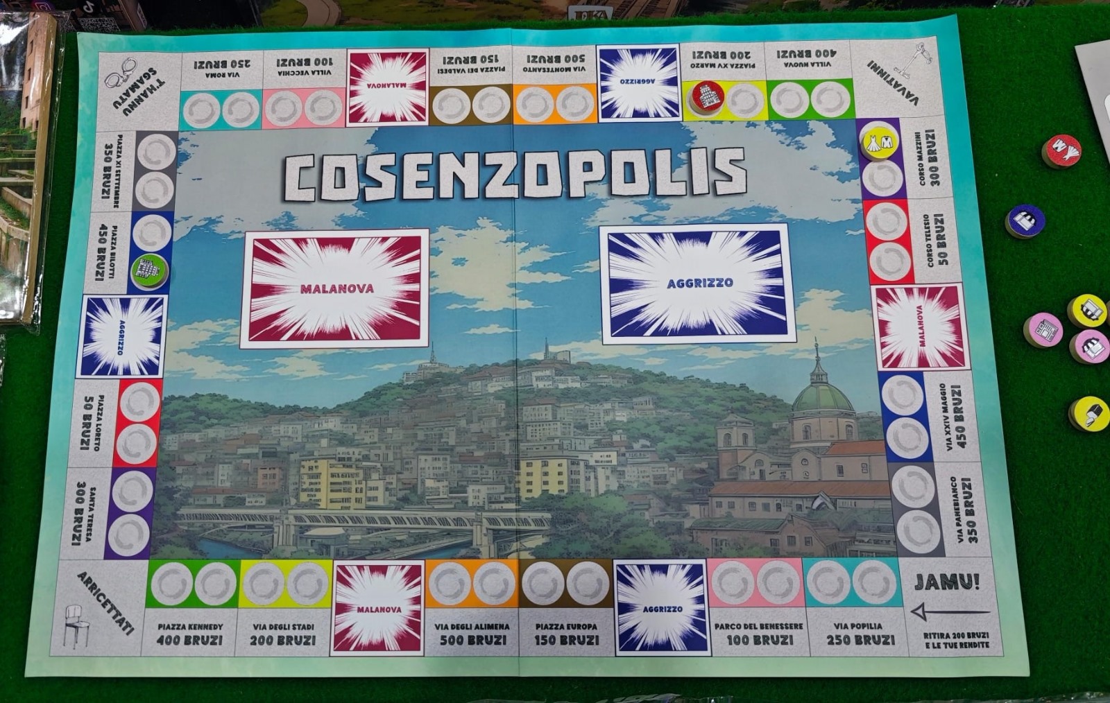 COSENZA – Il suo nome è “Cosenzopolis” ed è il nuovo e avvincente gioco da tavolo firmato “Joka Calabria”, l’associazione che si propone di promuovere il territorio calabrese, attraverso una dimensione ludica che faccia pensare al tempo libero. L’edizione 2024 del “Cosenzopolis” è stata ideata da due giovani cosentini, Giuseppe Biscardi e Antonio De Santis, e trae ispirazione dal famosissimo Monopoli, ma con significative variazioni che rivelano un amore profondo per la città di Cosenza. Questa felice intuizione è stata prontamente accolta dal Comune di Cosenza e dall’Amministrazione comunale guidata dal Sindaco Franz Caruso che, attraverso la delegata alla Cultura Antonietta Cozza, ha concesso il patrocinio all’iniziativa consentendo che l’Associazione potesse divulgare la sua attività e il suo gioco da tavolo per famiglie nel chiosco di Corso Mazzini-Piazza XI Settembre. Come afferma la delegata del Sindaco, Antonietta Cozza “il Cosenzopolis è il dono giusto per Natale.
