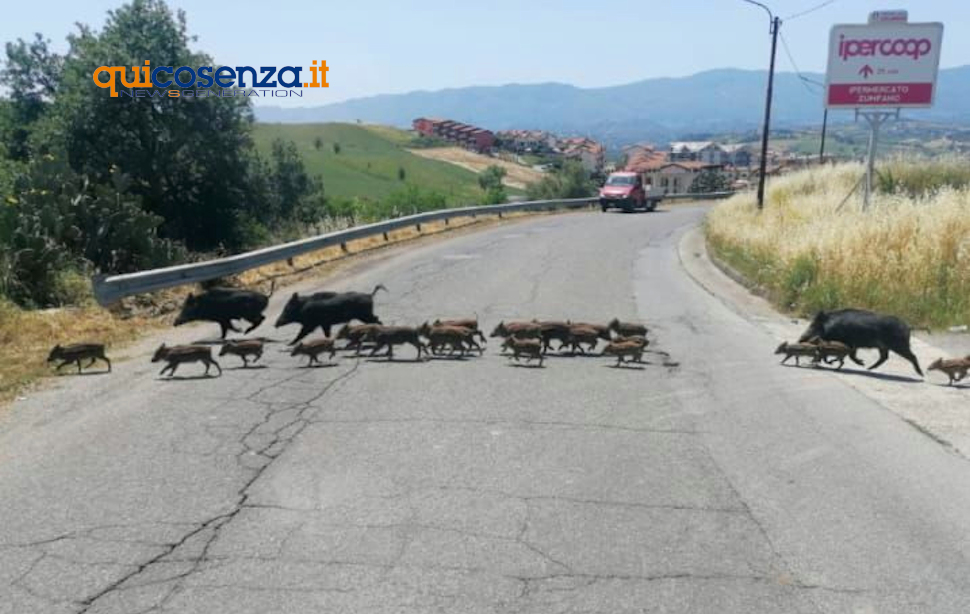 Se a Mendicino è soprattutto la notte che vengono avvistati i cinghiali, a Luzzi un vero e proprio branco, con tantissimi cuccioli al seguito, è stato immortalato da un automobilista mentre attraversavano la strada provinciale 248 in contrada Ginestre (ex Fornace Dima) nei pressi di un parco giochi per bimbi. Dopo aver attraversato la provinciale, come se nulla fosse, i cinghiali si sono poi dileguati nella boscaglia.