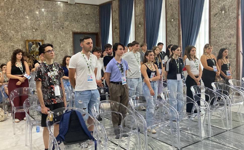 COSENZA – Giornata speciale per i trenta studenti calabresi protagonisti della Summer School “Desf4future”, che ieri sono stati ricevuti a Palazzo dei Bruzi dal sindaco di Cosenza Franz Caruso. Accompagnati dal sindaco di Cerisano, Lucio Di Gioia, e dal coordinatore della Summer School, prof. Pierfrancesco Perri, gli studenti hanno incontrato anche una rappresentanza della giunta comunale composta dal vicesindaco Maria Locanto, e dagli assessori Damiano Covelli e Massimiliano Battaglia.